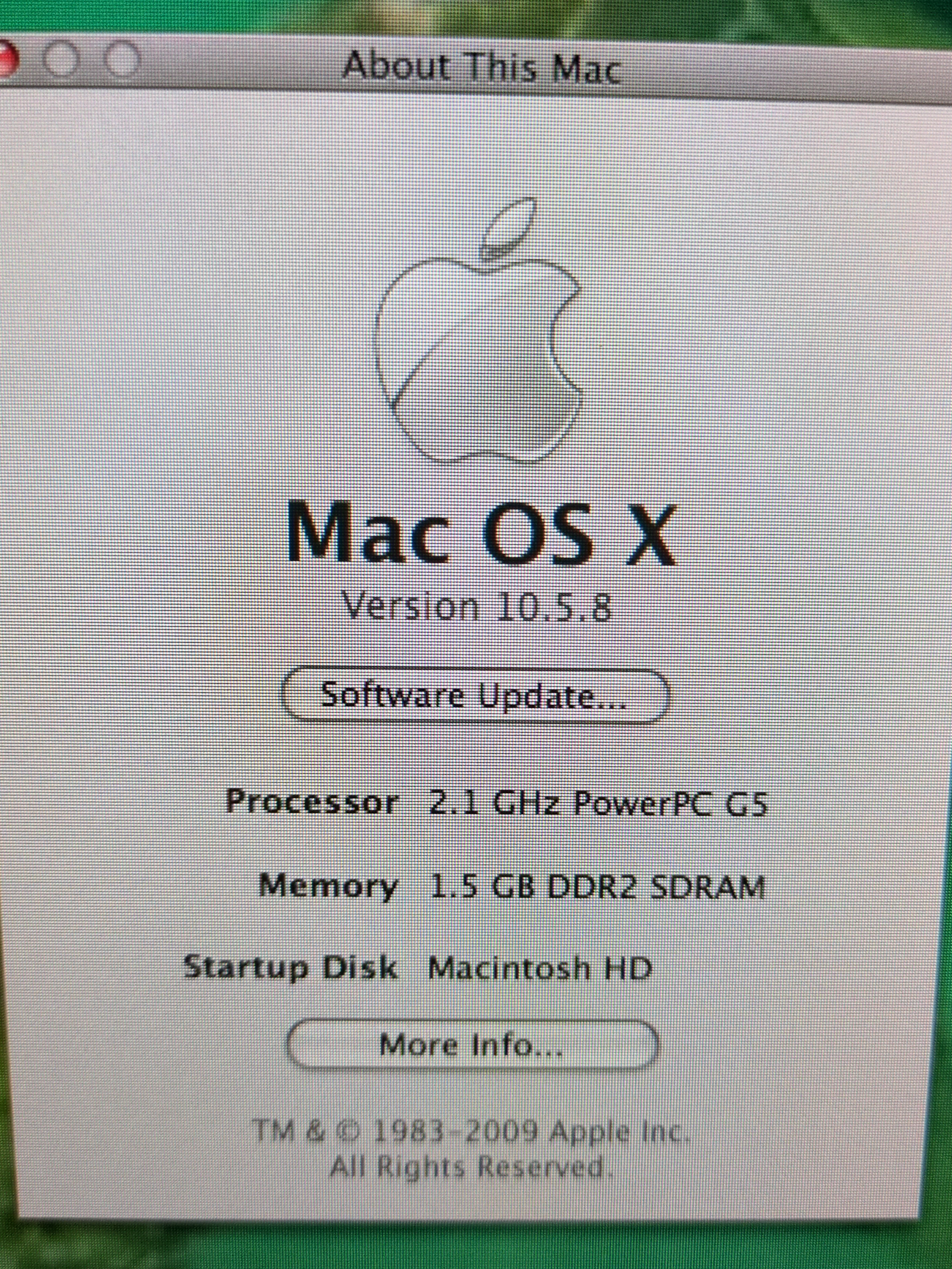 So of course it runs Mac OS X, the most recent version supporting this iMac is Leopard (10.5). And Mac OS X Leopard’s latest version was released in 2009… so that’s not even a lame 5-year support from Apple.