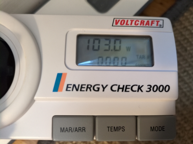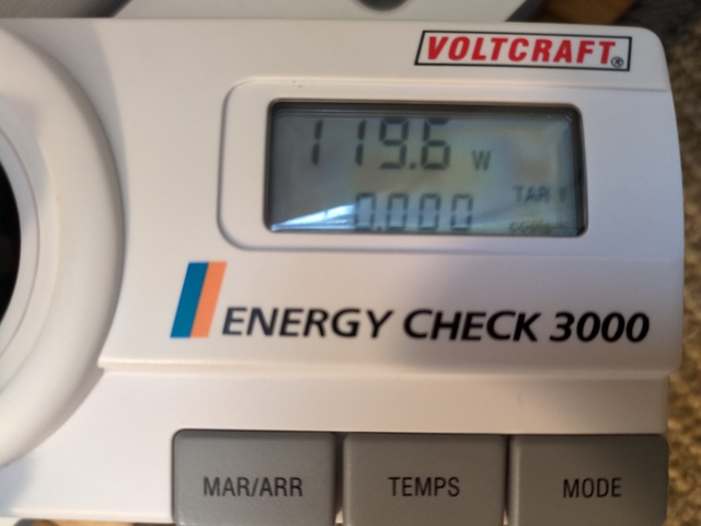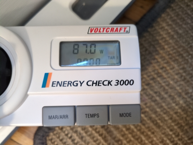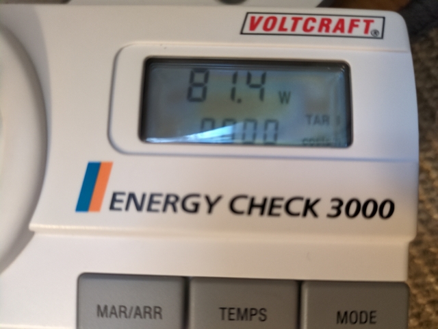 Given the variations I have seen, I would say the display consumes 20 to 25 W and the fan(s) between 8 and 10 W. The fans can be quite loud, but I’m not going to try to improve that like I did for the AlphaStation, as the iMac’s fans are regulated and don’t blow at full speed all the time.