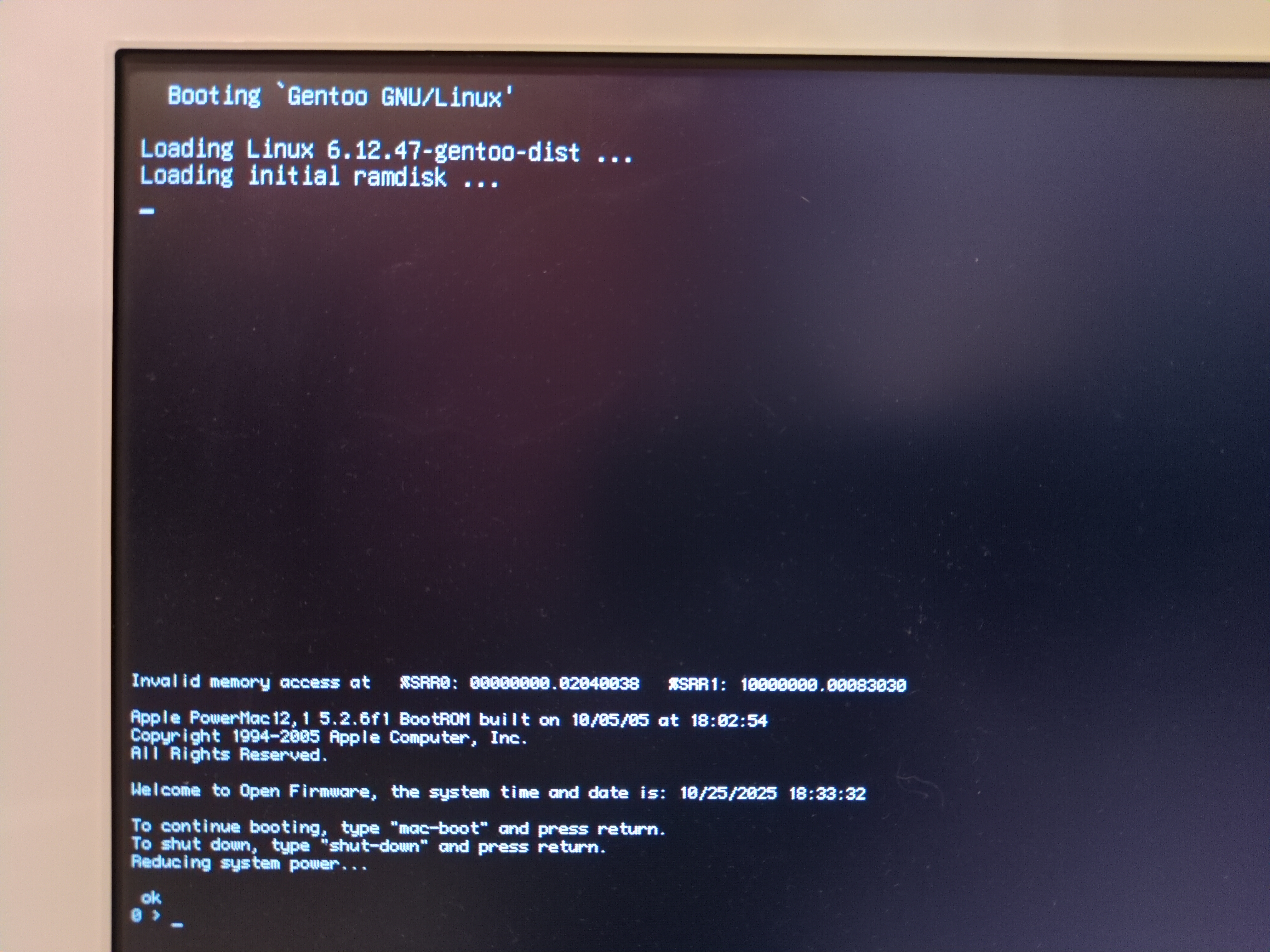 So I previously tried installing Debian and OpenBSD on the iMac G5 without success. Will it be finally the time I start running a Gentoo? Spoiler alert: no.